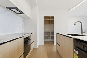 The upper level is dedicated to everyday living, where elevated views across the neighbourhood pair with raking ceilings to create a sense of openness and light. The layout connects lounge, dining, and kitchen seamlessly, making it a superb zone for relaxing or entertaining. A waterfall-edge island anchors the kitchen, supported by quality appliances, excellent storage, and a walk-in pantry.