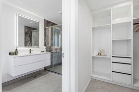 The master suite also occupies the upper floor, offering a tranquil retreat with its tiled wet-room ensuite and a well-planned walk-in wardrobe. Just before the master, a neatly tucked study nook provides a private work-from-home or homework station, while a powder room adds convenience for guests.